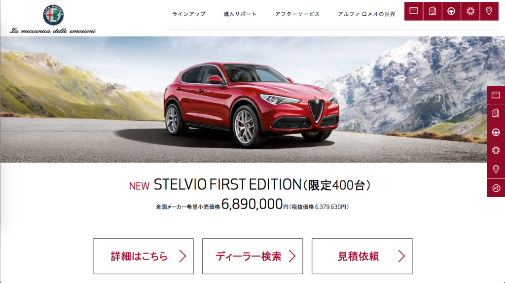 ▲ご覧の通り、アルファロメオのサイトも最新情報に更新されていますね!